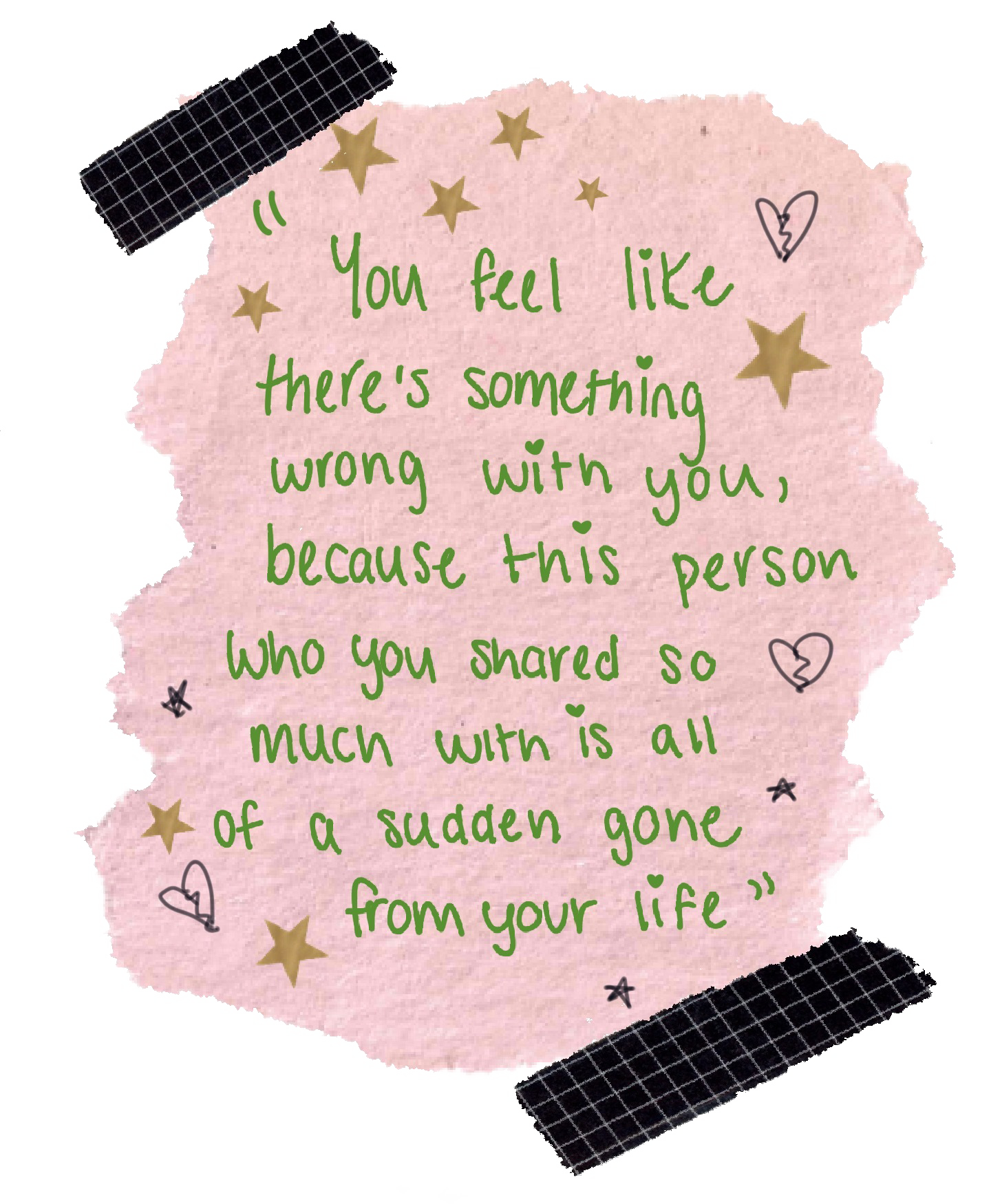 In TV shows and movies you see the main character fall in love, and if they break up with their partner, there are conversations, hurt, wallowing and often closure. You don’t see this representation when it comes to friendship breakups, making them isolating, gruelling and even embarrassing, because you think it only happened to you and that it was because of you.